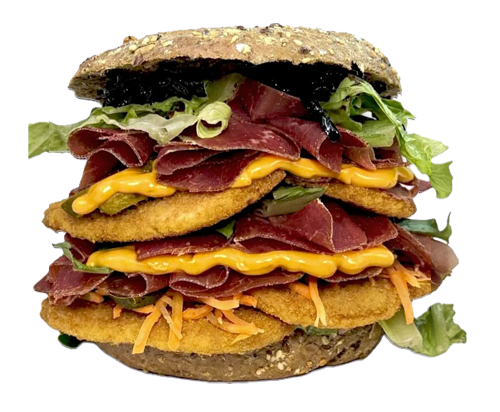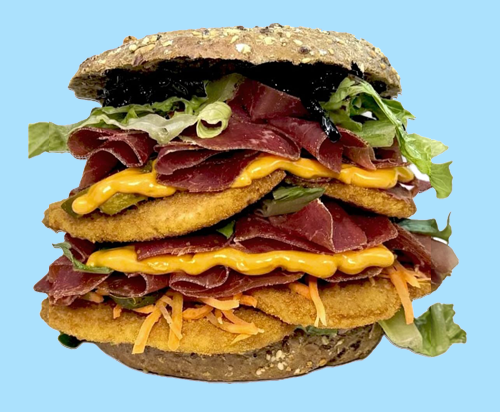 Alors on a créé un bagel monstrueux, généreux, qui déborde exprès, un truc qui te donne le sourire rien qu’en ouvrant la boîte.